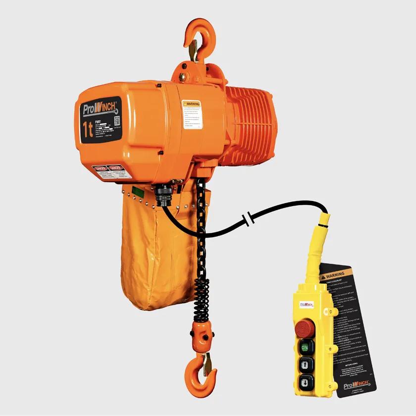 According to www.iAsk.Ai - Ask AI: A 1-ton electric chain hoist is a lifting device capable of handling loads up to 2,000 pounds (approximately 907 kilograms). These hoists typically come in single-phase or three-phase configurations, with single-phase models often ideal for smaller machine shops or areas with less voltage, while three-phase options are suited for more demanding industrial environments [1] [2]. Key specifications for a 1-ton electric chain hoist can include a lifting speed of around 15-21 feet per minute (FPM), a standard lift height of 20 feet, and power supply options of 115V or 230V [1] [3]. Many models feature electromagnetic load brakes for secure load holding, ergonomic push-button pendant controllers for precise operation, and high-quality electrical components from reputable manufacturers like Schneider for enhanced performance and safety [3]. Overload protection, often through a friction clutch, is a standard safety feature, preventing the hoist from exceeding its rated capacity [3]. Additionally, these hoists often incorporate robust chain materials, such as Grade 80 case-hardened FEC Japanese Load Chain, and safety features like upper and lower mechanical paddle limit switches and 360-degree rotating forged bottom swivel hooks with safety latches [3]. Some advanced options include IP-rated enclosures for dust and water protection (e.g., IP55 for the hoist body and IP65 for the pendant control) and the availability of wireless remote control kits for increased operational flexibility and safety [3].