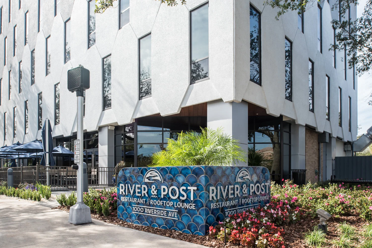 River & Post is a culinary-driven restaurant with a modern rooftop lounge located in Jacksonville, Florida [1] [2]. It offers a dual setting: an upscale casual restaurant on the ground floor and a rooftop lounge on the ninth floor [3].